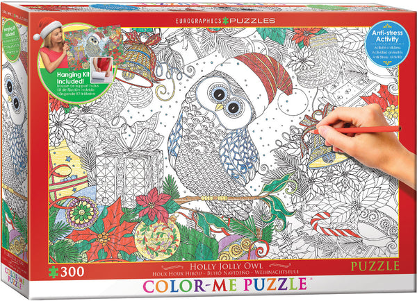 Profitez de rassembler ce "puzzle de couleur" de 300 pièces de Holly Jolly Owl. Grande activité anti-stress! Assemblez le puzzle et colorez-le! Kit suspendu également inclus! Remarque: des crayons de...