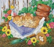 Deux chatons adorables dorment dans le jardin