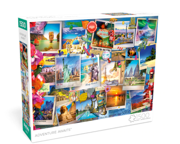 "Adventure Awaits" est un magnifique puzzle de 1500 pièces de Buffalo Games. Comme son nom l'indique, cette illustration vous invite à l'aventure à travers le monde à travers des photographies...