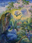 Ce puzzle de puzzle de l'édition des paillettes de 1000 pièces, le messager, est basé sur l'œuvre de l'artiste fantastique Josephine Wall. Une belle déesse arc-en-ciel se trouve au bord de l'eau avec un troupeau d'oiseaux de couleur bleue. Une petite fée de messager arrive avec elle une superbe rose blanche. La scène est pleine de fleurs et de plantes colorées. Assemblez cette scène fantastique vivante.