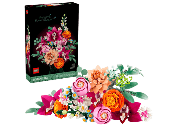 Les fleuristes en herbe peuvent se détendre en construisant ce bouquet composé de 15 tiges de fleurs LEGO, incluant des marguerites, des bleuets, de l'eucalyptus, des fleurs de sureau, des roses, des renoncules, des orchidées cymbidium, un dahlia nénuphar et une campanule. Toutes les tiges sont ajustables, permettant ainsi aux constructeurs de créer un bouquet personnalisé à utiliser comme décoration florale à la maison ou au bureau. Pour encore plus de personnalisation, les fleurs peuvent être associées à d'autres bouquets LEGO, vendus séparément, afin de créer une composition florale unique et plus imposante.