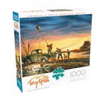 Ce puzzle intitulé Les écologistes du célèbre peintre Terry Redlin représentent des hommes en plein air et leurs chiens qui travaillent pour créer un birgin.