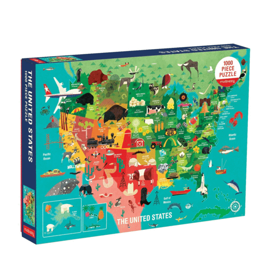 Toute la famille peut assembler ce puzzle de 1000 pièces des États-Unis de Mudpuppy. Le puzzle terminé présente une carte colorée des États-Unis, y compris des illustrations des attributs des...