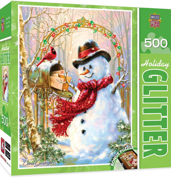 Confortant autour de la table pour un plaisir familial de vacances avec "Lettres à Frosty", un beau puzzle qui présente un bonhomme de neige amical (complet avec un chapeau haut...