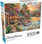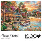 Freedom at the Lake est un puzzle de 1 000 pièces, par l'artiste Chuck Pinson. Certains canards colverts nagent jusqu'à un bateau garé le long d'une rangée de maisons à...