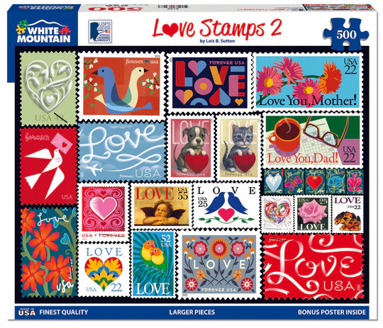 Love is in the air, love is on our minds and in our hearts, and love is in the U.S. Mail! Designer Lois B. Sutton has arranged this gorgeous collection of stamps that covers all the love. No matter who you love, there is a love stamp out there for you in this 500 piece collage style jigsaw puzzle.
