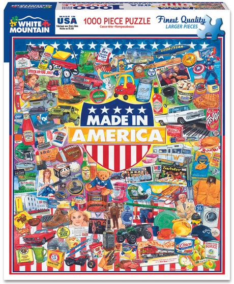 Tout comme les puzzles White Mountain, tous ces produits fabuleux ont leur origine dans le bon vieux USA. Jeep, Heinz, Arm & Hammer, Crisco, 20 Mule Team Borax, Milton-Bradley, Necco,...