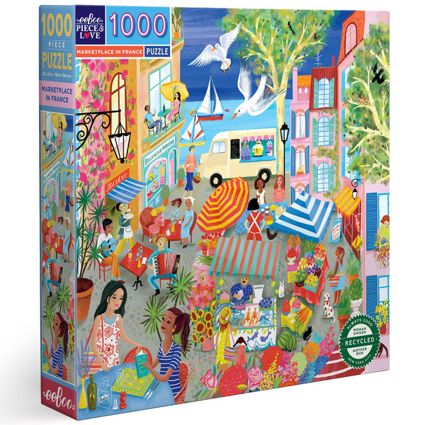A seaside market somewhere in France, busy with color, music, and activities imagined by artist Uta Krogmann.Piece Count: 1000 glossy piecesPuzzle size when completed:  23 inches x 23 inchesSustainably Sourced: Made...