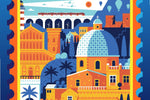 Prenez des vacances sans jamais avoir à emballer un sac.  Profitez de cette scène méditerranéenne stylisée - les formes et les couleurs amusantes en font un favori des fans.