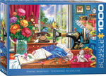 Le puzzle de 1000 pièces capture une salle de couture vibrante avec une fenêtre