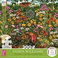 Ces 300 puzzles surdimensionnés présentent l'art par Sandy Williams, c'est une image de fleurs rose vif, d'oiseaux et de papillons.