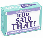 The mini game of mismatched quotes! See if you an identify the greatest (and most unexpected!) philosophical minds in this hilarious game of quotes. Each card contains a quote and...