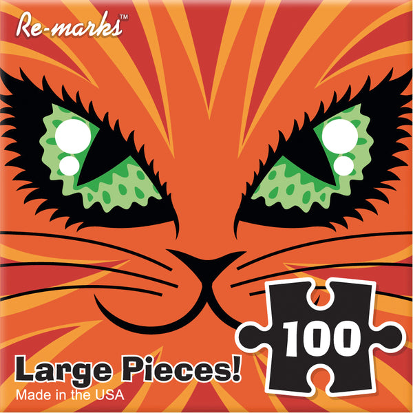 Ce 100 gros morceau de puzzle en cubes comprend un monstre de chat orange.
