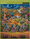 Sentez la nuit à venir dans cette belle peinture de la Nativité. Les bergers, le bétail et les sages respectent cette scène historique alors qu'un ange annonce la naissance du...