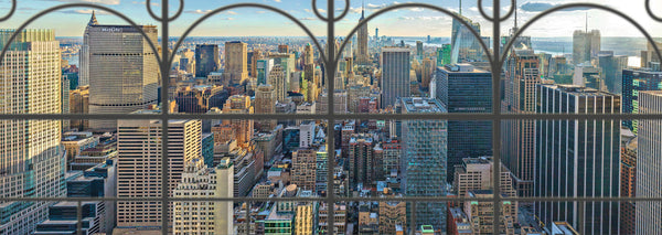 Une vue de l'horizon de New York vues depuis la fenêtre d'un gratte-ciel. ** Article surdimensionné, veuillez noter que des frais d'expédition supplémentaires peuvent s'appliquer.