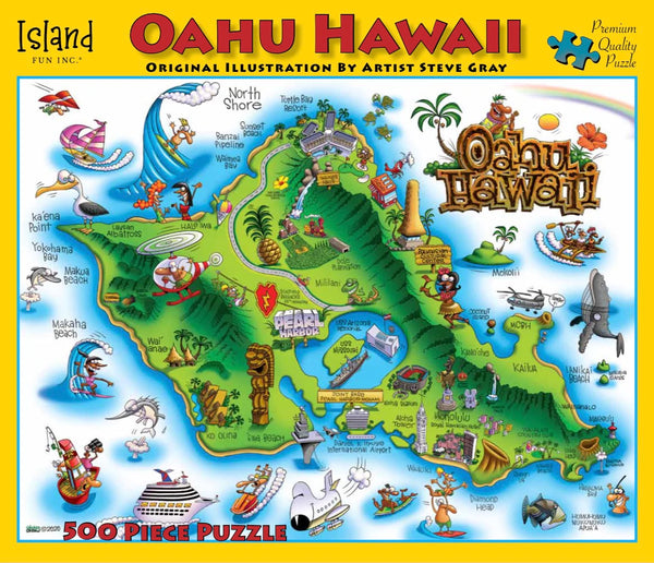 • Celui-ci est un wow! Ce puzzle amusant met en évidence de nombreux points d'intérêt clés d'Oahu, notamment Honolulu, Waikiki Beach, Pearl Harbor avec le USS Arizona Mémorial et le USS Missouri, Diamond Head, la plantation de Dole, le centre culturel polynésien et la rive nord.
