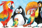 Surrounded by tropical feathers and confused stares, our chilly little penguin is clearly the odd bird out. This colorful MicroPuzzles is full of personality, bright vibes, and just the right touch of mischief.