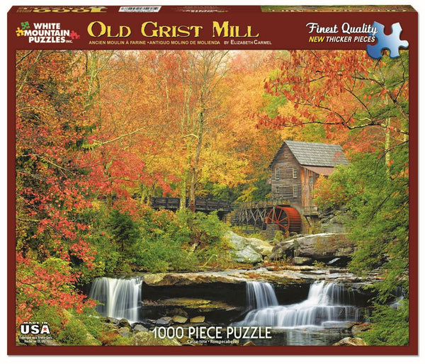 Ce puzzle de White Mountain présente une image d'un vieux moulin à l'automne.