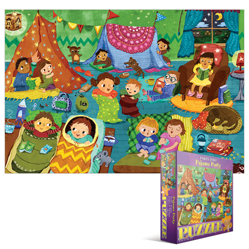 C'est l'heure de la fête en pyjama! Ce puzzle magnifiquement illustré donne vie au plaisir d'une fête d'anniversaire pour enfants.