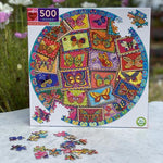 Relevez le défi supplémentaire d'un puzzle de puzzle en forme de rond avec le puzzle rond des papillons vintage d'Eeboo. Ce beau collage de lépidoptères colorés enchantera tout casse-tête. Avec l'art du talentueux Fumiha Tanaka.