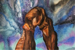 Découvrez le parc national des Arches dans l'Utah.  Ce bel art illumine et se concentre sur le riche rock rouge désertique contrairement aux couleurs froides du ciel nocturne.  Le Galaxy Sky montre un style impressionniste avec des teintes de bleu, turquoise, vert, violet et noir.