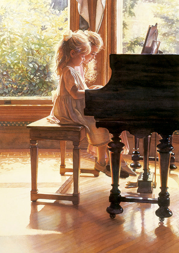 Ce puzzle de 1500 pièces comprend deux petites filles jouant du piano et partageant le temps clé.