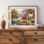 C'est une belle scène qui vous transporte dans un endroit idyllique où vous pouvez sentir la beauté de la nature autour de vous et sentir l'eau couler, et vous pouvez presque toucher l'herbe douce et observer les animaux de la forêt. Vous pouvez vous asseoir, vous détendre et rêver. Le camping peut être une façon amusante de profiter de la nature et du plein air.