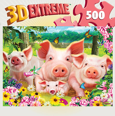 Ce puzzle de 500 pièces de patch de porcelet comprend 4 porcelets dans un patch de fleurs. 3D