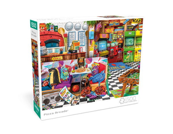 Il y a beaucoup à découvrir et à explorer dans ce puzzle de haute qualité de haute qualité basé sur l'œuvre d'art d'Aimee Stewart. Stewart est un artiste, photographe et écrivain autodidacte qui se spécialise dans la peinture numérique éclectique luxuriante. Pizza Arcade est remplie de nostalgie des années 90, cette scène vous ramène dans une arcade de pizza où vous avez passé beaucoup de temps et de quartiers en tant qu'enfant. Foosball, jeux d'arcade, pizza et une boombox avec une pile de cassettes, que voulaient de plus un adolescent ?!