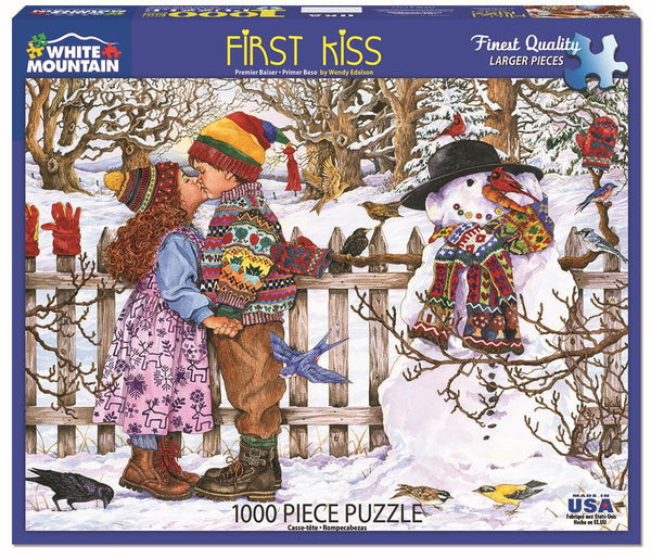 Un premier baiser partagé au milieu de l'hiver. Les oiseaux ne semblent pas trop s'en soucier, mais le bonhomme de neige est heureux pour eux.
