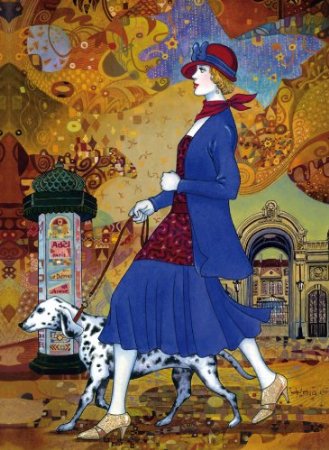 Ce puzzle de Clementoni présente une femme promenant son chien.