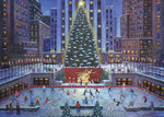 Un grand arbre de Noël brille dans le centre de Rockefeller où les touristes et les habitants viennent faire du patin à glace et célébrer la saison des fêtes.