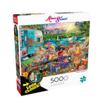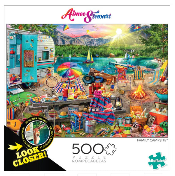 Ce magnifique puzzle de 500 pièces, le camping familial, est de la série Look plus proche de Buffalo Games. La famille a déballé pour l'été et s'est installée à côté...