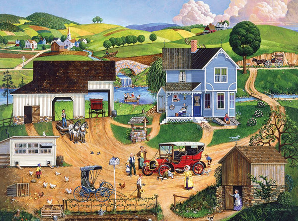 Une scène vintage d'Amérique rurale, à l'époque où une voiture - toute voiture ferait une nouveauté passionnante pour une famille entière.