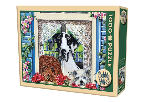 Jake, Buddy et Molly regardent, espérons-le, par la fenêtre souhaitant que leurs amis «reviennent bientôt». Ou sent-ils vraiment en train de sentir les jolies fleurs dans la fenêtre?