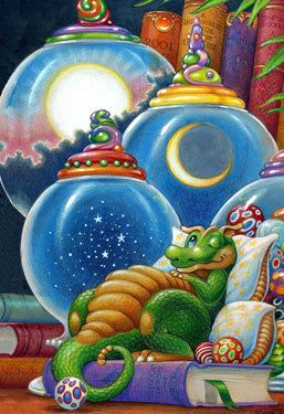 Ce puzzle de 100 pièces de rêves célestes présente un adorable petit dragon qui s'endormit.