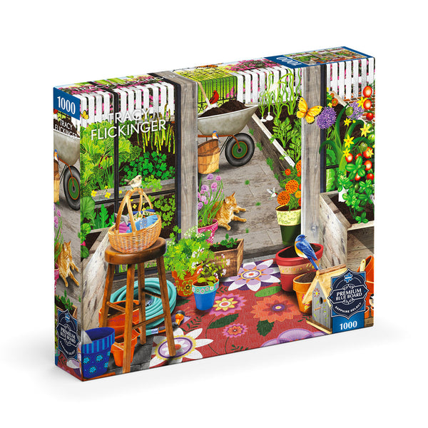 Challenge yourself with this 1000 piece puzzle for adults, featuring beautiful artwork by Tracy Flickinger depicting a garden on a lovely spring day. Sapphire Select Puzzles offer premium, blue puzzle...