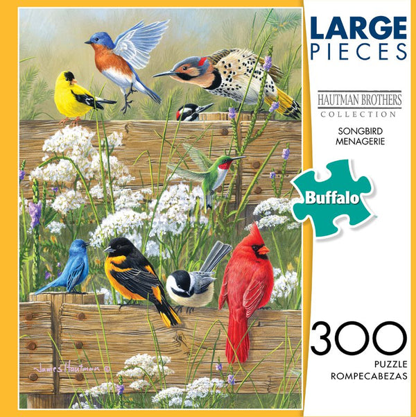 Ce puzzle de 300 pièces intitulé Songbird Menagerie démontre des détails exquis et est fait de pièces de puzzle qui sont 67% plus grandes que les pièces de puzzle traditionnelles. La belle œuvre d'art est complimentée d'une affiche de couleur pliante en pleine couleur qui est un guide idéal pour l'assemblage.