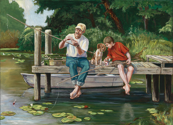 Lola donne un peu de nez à Mikey, son pêcheur préféré en attendant «sur le quai» pour que grand-père Gary enfile son poteau.