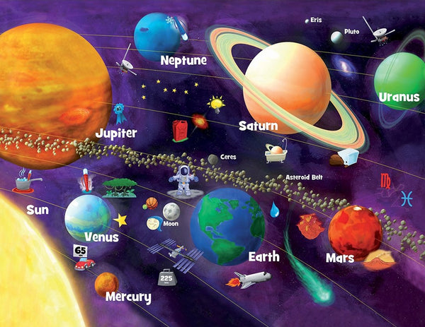 Apprenez toutes les planètes lorsque vous assemblez ce puzzle du système solaire de 60 pièces. Assemblez-le et regardez-le briller dans le noir! Ce puzzle comprend un insert en couleur avec...