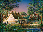 Ce puzzle de 1000 pièces intitulé Family Time par le célèbre peintre Terry Redlin vous emmènera dans une maison de campagne et une écurie de chevaux. Deux hommes et quelques enfants peuvent être vus avec leurs cannes à pêche sous l'arbre.