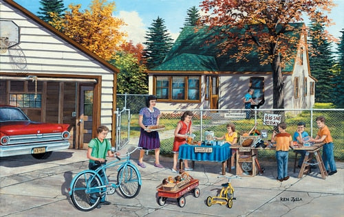 C'est le temps de vente de garage! Et maman a également fait des cookies à vendre! 550 pièces Puzzle de puzzle de l'artiste talentueux Ken Zylla.
