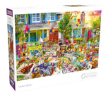 Ce puzzle de 2000 pièces intitulé Vente de garage par l'artiste Aimee Stewart propose une vente de garage très chargée et dynamique!