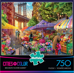 Ce puzzle, «Brooklyn Flower Market», met en valeur un marché des rues animées près du pont de Brooklyn.