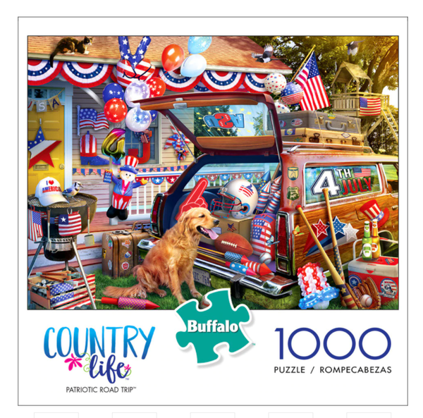 Ce superbe puzzle de puzzle de 1000 pièces, Patriotic Road Trip, est de la série Country Life de Buffalo Games. Cette famille All-American est prête pour le 4 juillet! Les...