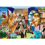 Ce puzzle enchanteur présente une charmante scène d'un chat sophistiqué qui applique méticuleusement son maquillage, le tout habillé pour une soirée. Pendant ce temps, ses adorables petits chatons gambadent avec...