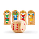 2. Use the four wooden characters and the dice to play a race-around-the-world game.