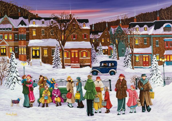People returning home near the end of a day of celebration, bags of gifts in hand.Born in Montreal in 1954, Nicole Laporte is currently living Rigaud, Quebec. From an early...