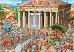 Does Zeus have control over this citadel? The Acropolis of Athens appears to be under siege by Athenians or perhaps they're holding their festival, the Panathenaea? Either way, this 1000 piece cartoon jigsaw puzzle is sure to provide hours of entertainment long after the puzzle has been restored to order.