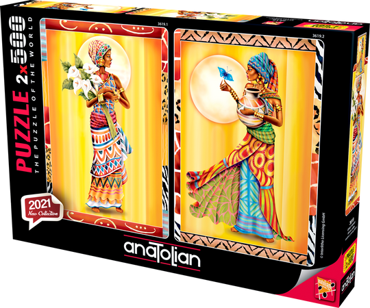 Two beautiful African Ladies dressed in their vibrant clothes is yours to assemble with these two 500 piece Anatolian puzzles in one box (2 x 500 pcs)